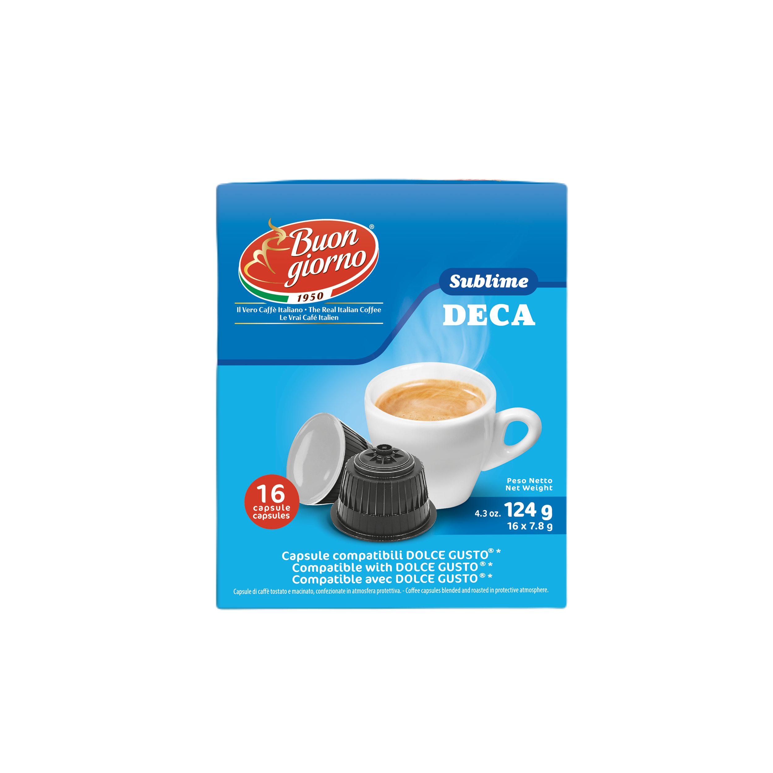 Caffe Buongiorno Sublime DECA for DOLCE GUSTO 16pcs kawa mielona bezkofweinowa w kapsułkach typ DOLCE GUSTO