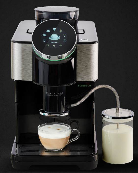 Ekspres STARK&NERO SCIROCCO jest kompaktowym urządzeniem z lini profesjonalnej do użytku domowego oraz do małego biura (3-5 osób). Użytkowanie jest bardzo intuicyjne dzięki panelowi dotykowemu oraz pierścieniowi obrotowemu.